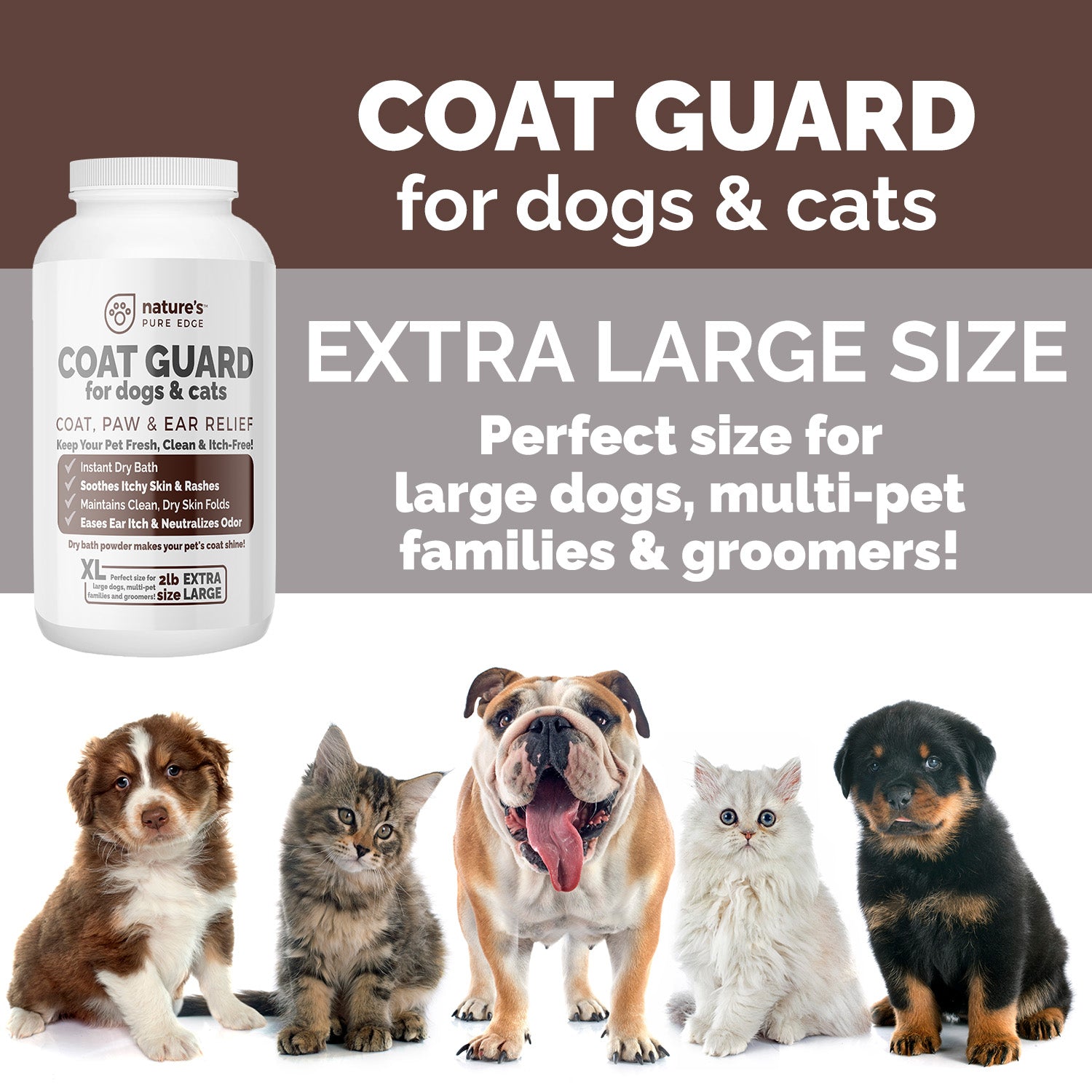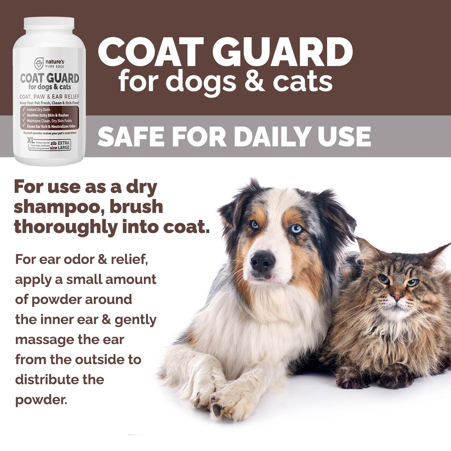 - Safe and Non-Toxic Pet Deodorizer for Multi Pet Households and Large Dogs: Get more value with our extra large 2 lb jar of dry dog shampoo. This baño en seco para perros is designed for frequent use, ensuring your pet stays clean and fresh with our effective dry bath for dogs.