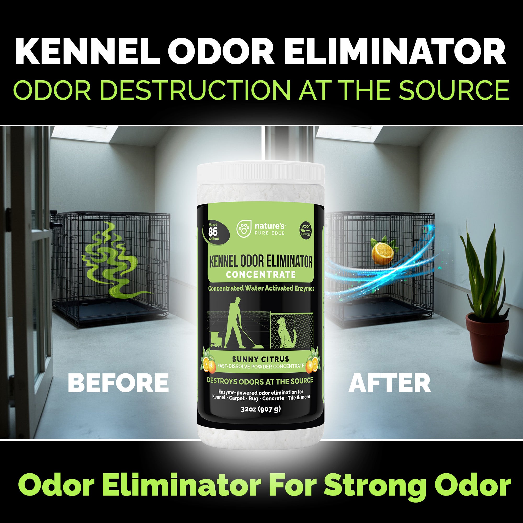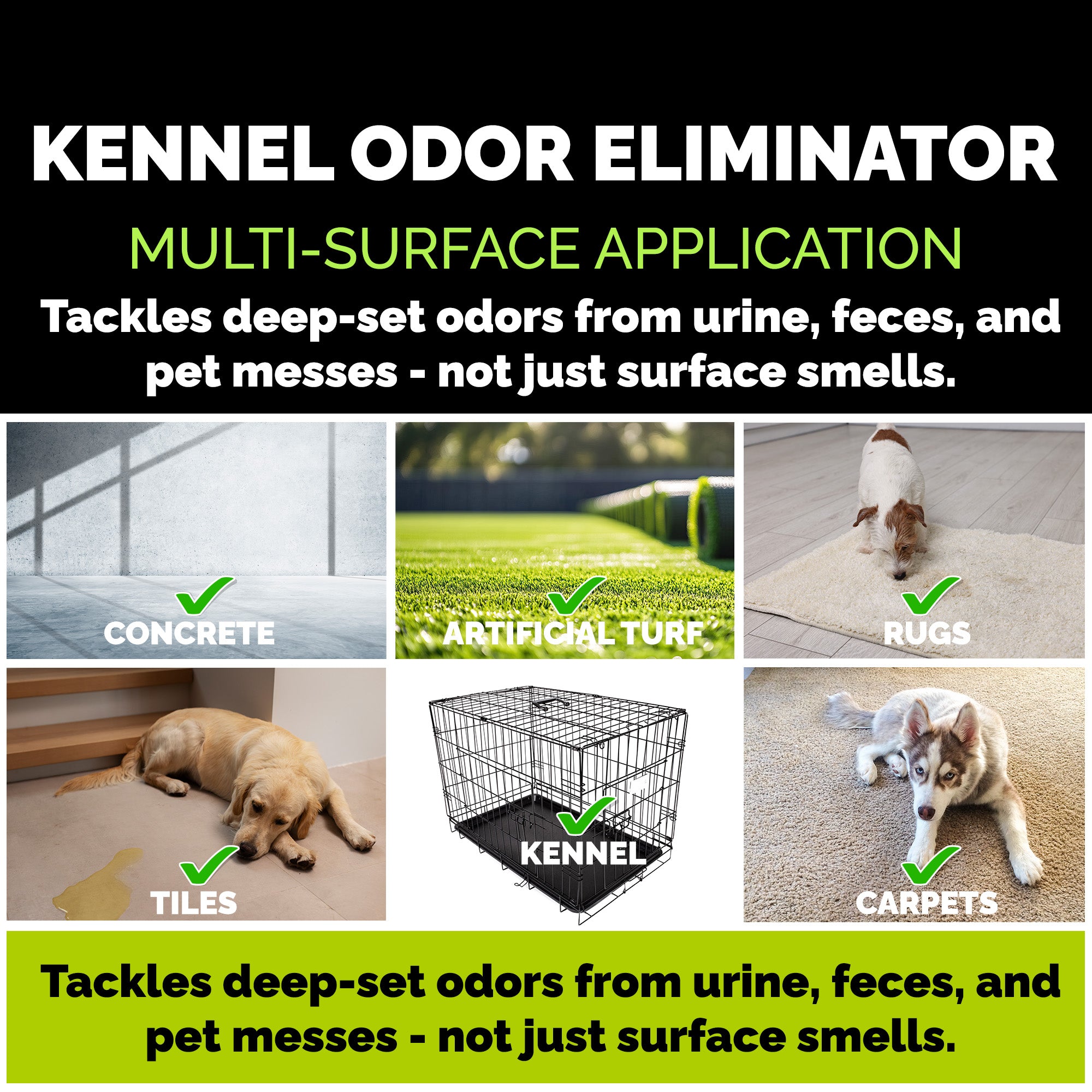 - Professional Strength, Instantly Dissolving- Our kennel odor eliminator for strong odors dissolves and activates instantly in water to be used as a mop soap or spray floor cleaner for cat and dog urine and feces, making it the most powerful remover of all animal odors, especially set in cat and dog pee odors. Professional strength pet odor enzyme blend focuses on pet odors. No scent and no overpowering perfumes.